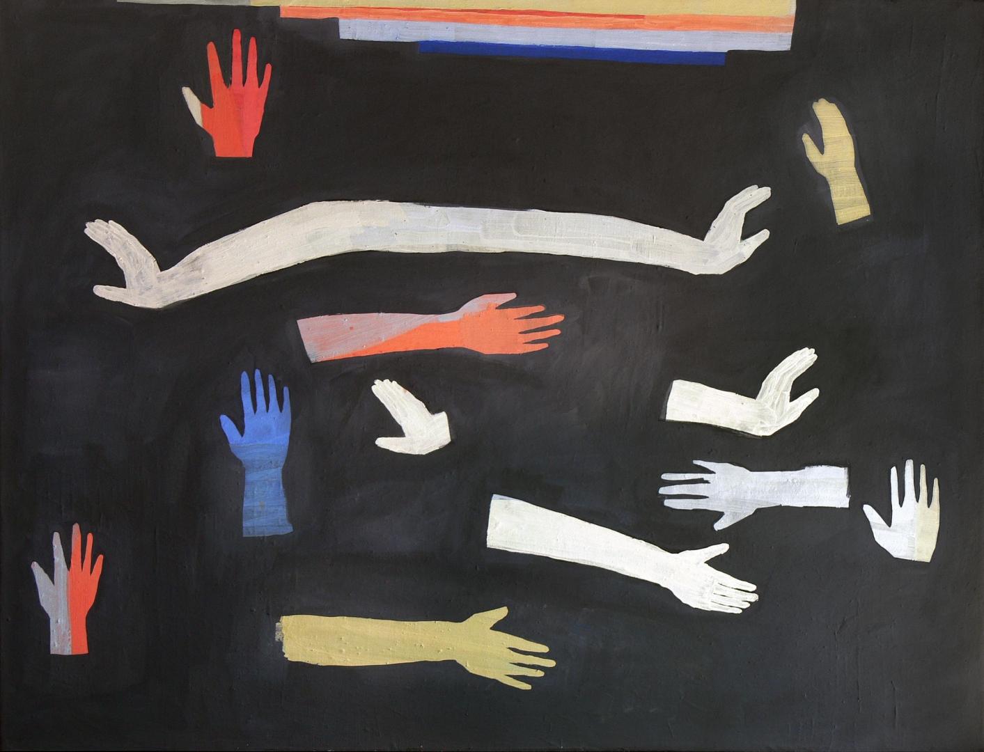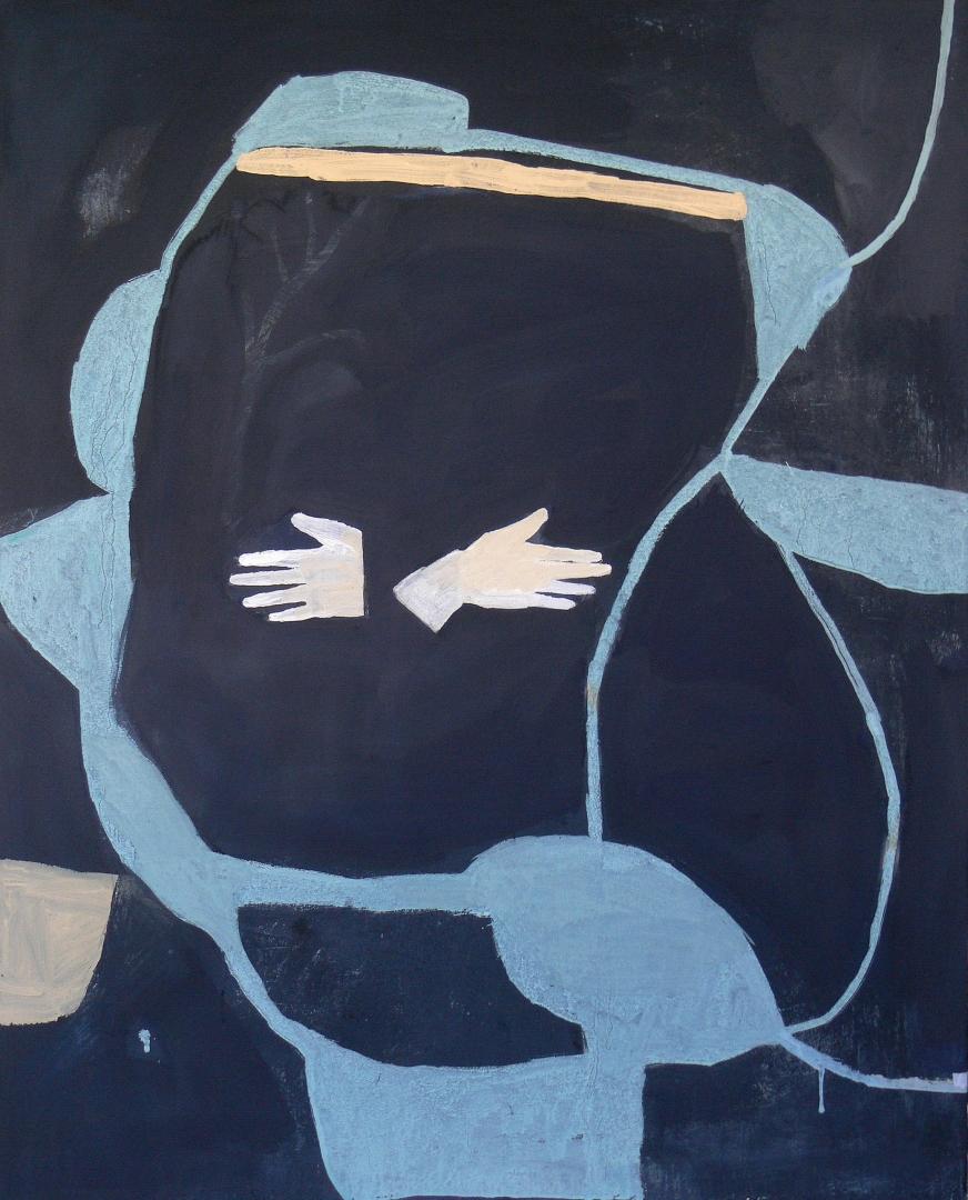 L’artiste s’intéresse également au corps mais dans sa singularité, évoque des mains ouvertes ou non ou deux bras soudés s’étendant dans l’espace. Ce ne sont pas des études mais en quelque sorte des morceaux de vie. Tout est signe chez ce peintre et l’on apprécie la sobriété du tracé. Sur toile ou sur carton elle pose la matière effectue des grattages et repeint selon son ressenti.