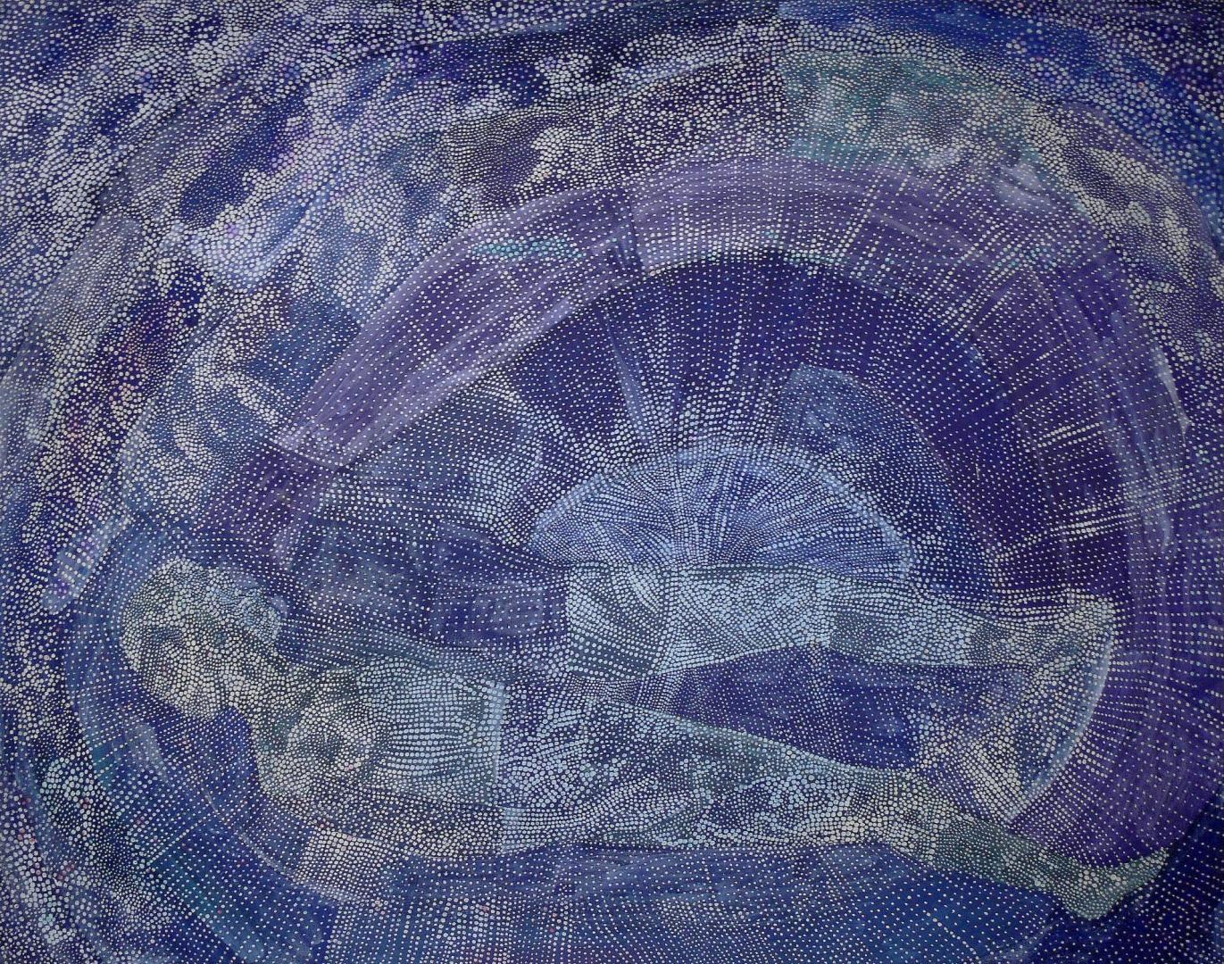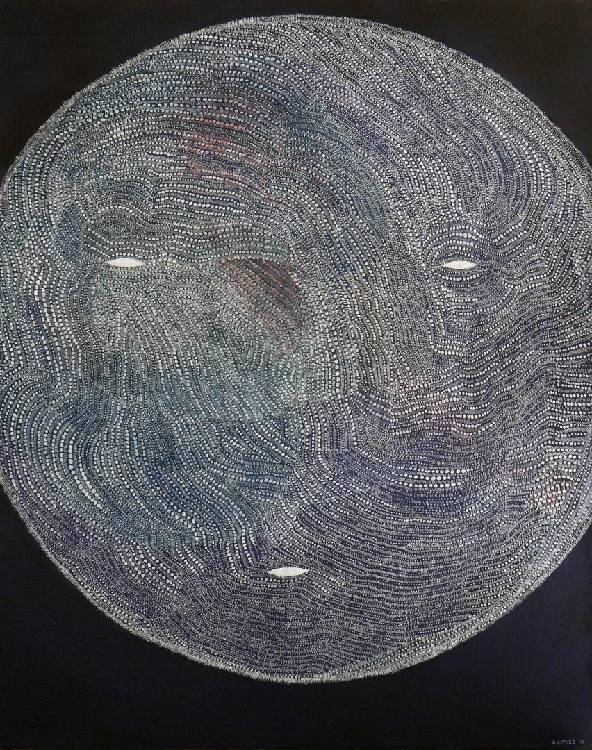 Alexandra Duprez possède un regard et une écriture bien à elle et cette originalité d’expression exerce une attirance incontestable. Sa peinture a été nourrie par ses voyages en Australie où elle a découvert l’art aborigène et en Inde. Cette Bretonne qui vit à Douarnenez, bien loin de réaliser des marines se laisse emporter par son imaginaire. Elle crée ainsi des œuvres énigmatiques et s’exprime en un fin graphisme animé de petits points rythmés en réseau. En une intéressante invention plastique Alexandra Duprez raconte des histoires un peu étranges évoquées en des tons subtils.