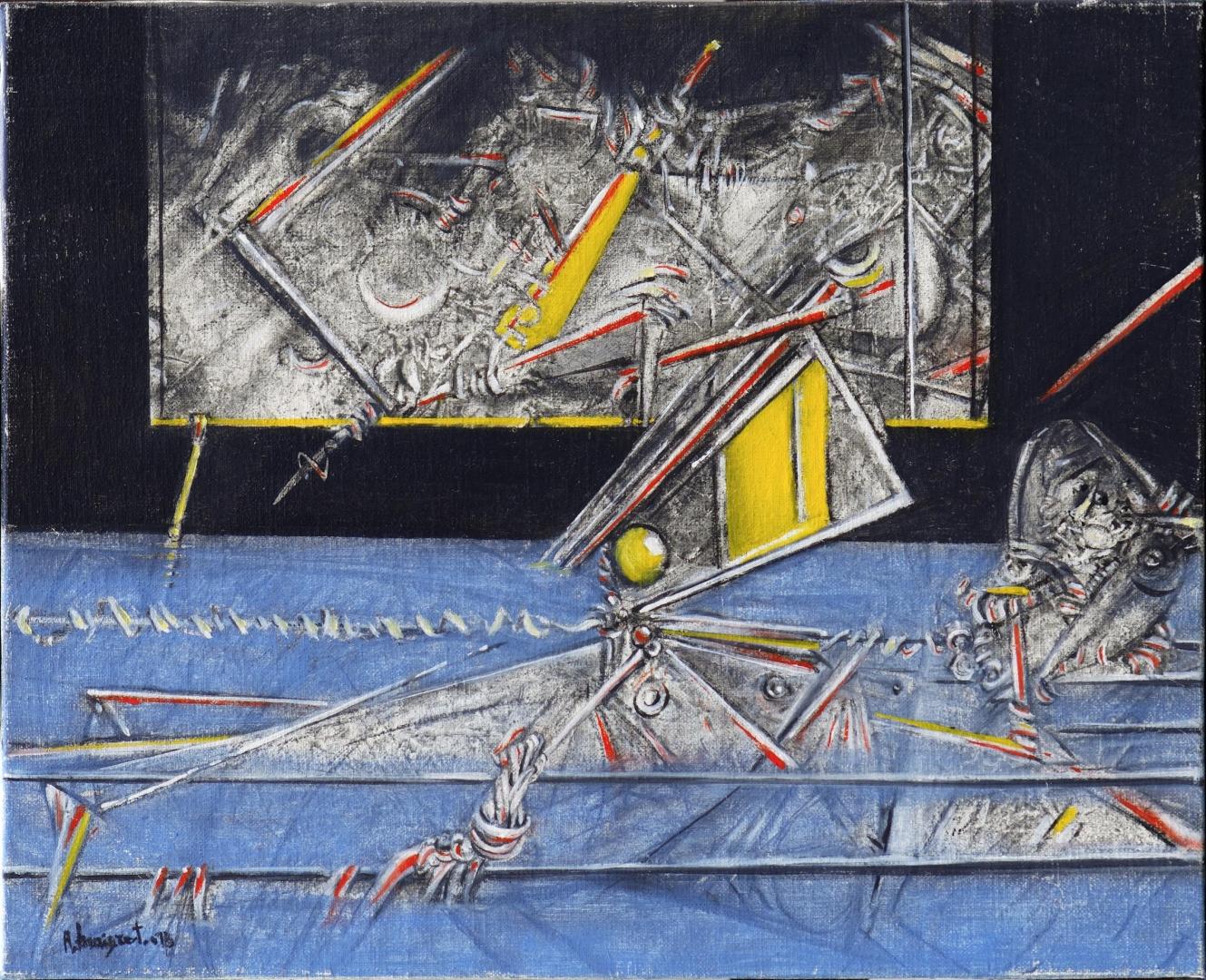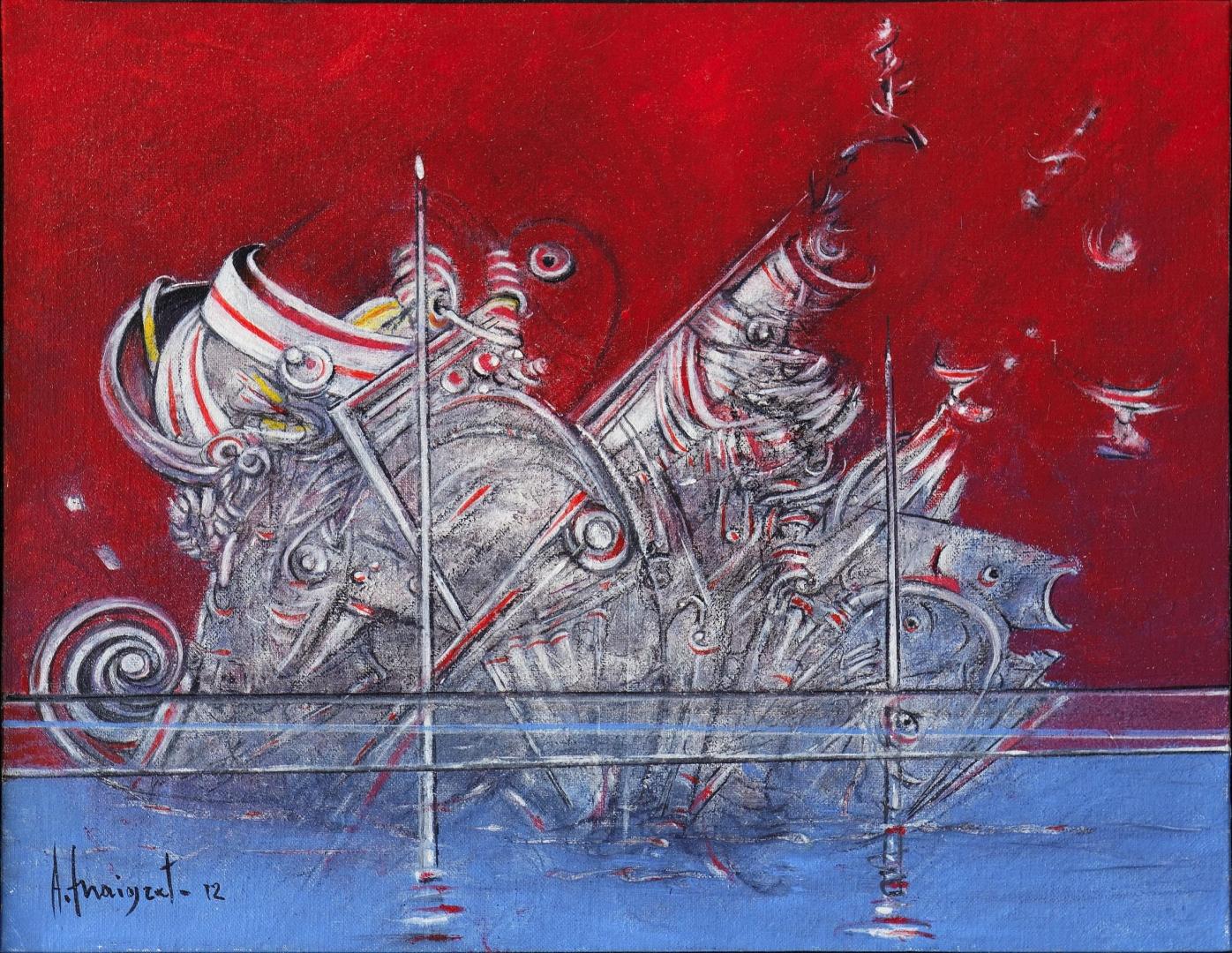 Un tracé nerveux dynamise ces œuvres nées de l’imaginaire.où des poissons ou leur carcasse, hors de l’eau, animent les rives. Par ses multiples touches André Maigret trace le dessin entre réel et invention.Le dépaysement est total avec ces toiles enlevées parfaitement originales, qui stimulent l’imaginaire ; à chacun de reconstituer son tableau.