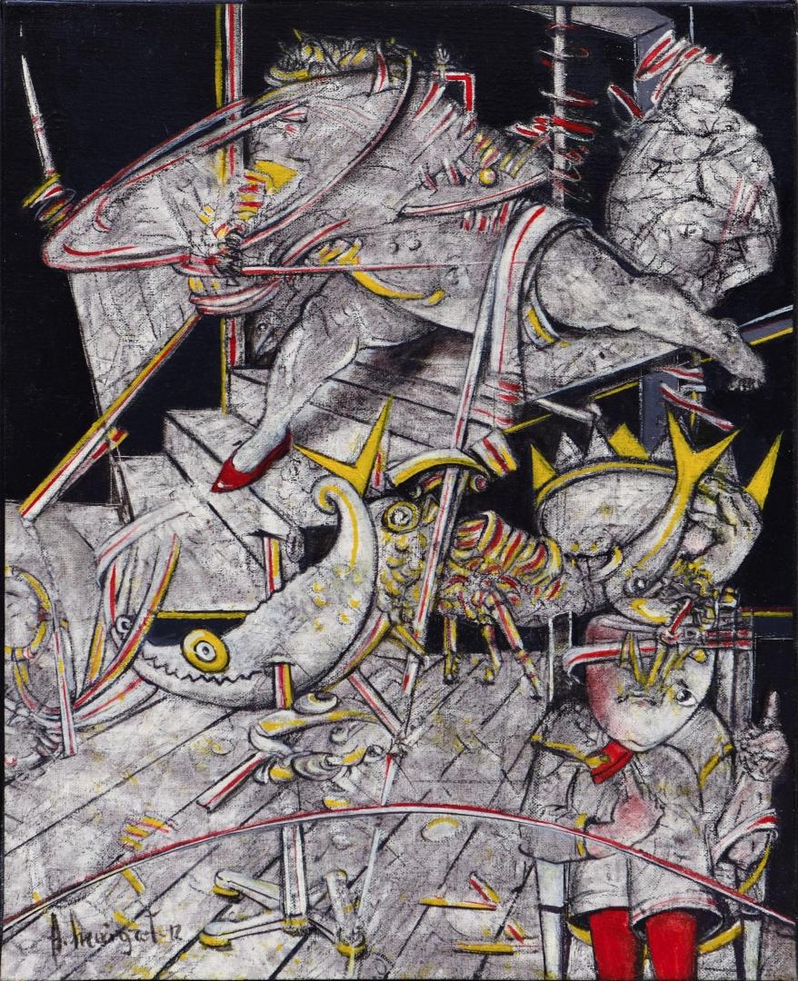 Il faut entrer dans l’univers un peu hermétique d’André Maigret sans à priori, se familiariser avec ces animaux fantastiques venus d’ailleurs, entremêlés de visages humains et le déchiffrer peu à peu.