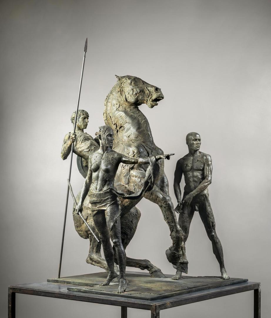 Pour Christophe Charbonnel la technique, indispensable, permet avant tout d’atteindre à l’essentiel, à une expression unique. Beauté, rythme des volumes traduisent la grandeur de ces héros de légende. L’esprit et la matière se conjuguent dans ces bronzes qui se déploient dans l’espace. Ils naissent de l’originalité créatrice de cet artiste qui semble réaliser les volumes dans un souci de vérité et de vibrations lumineuses et de conférer l’intériorité aux modèles. Cette œuvre rappelle les liens existant entre les créateurs de tous les temps.