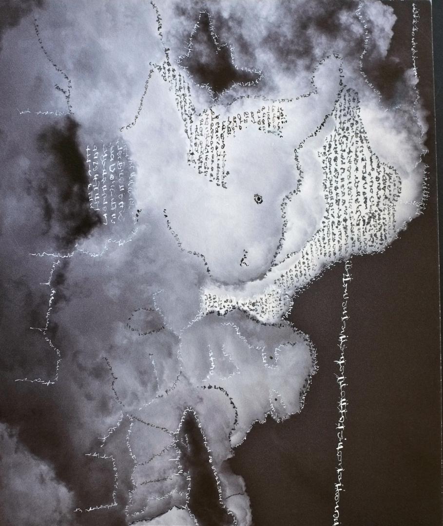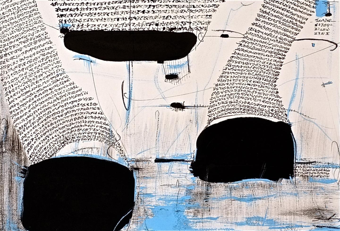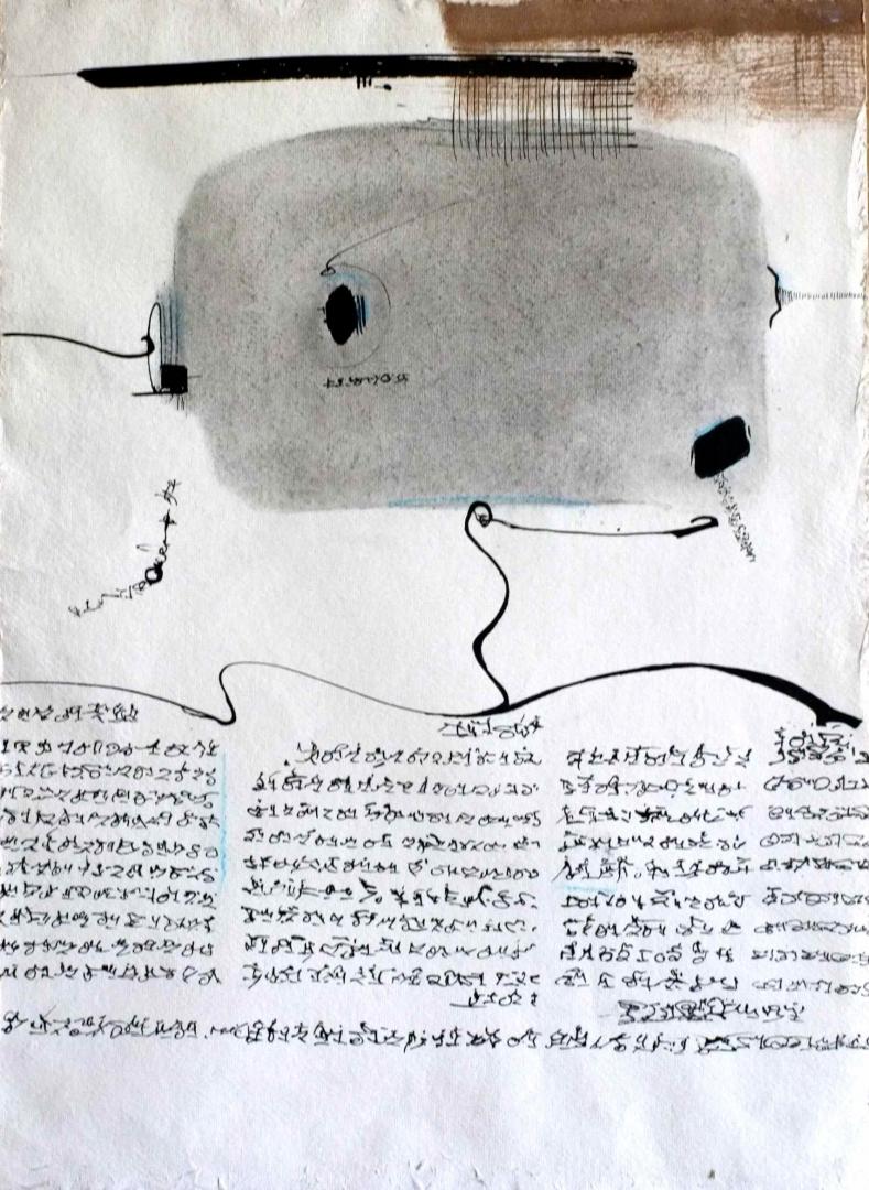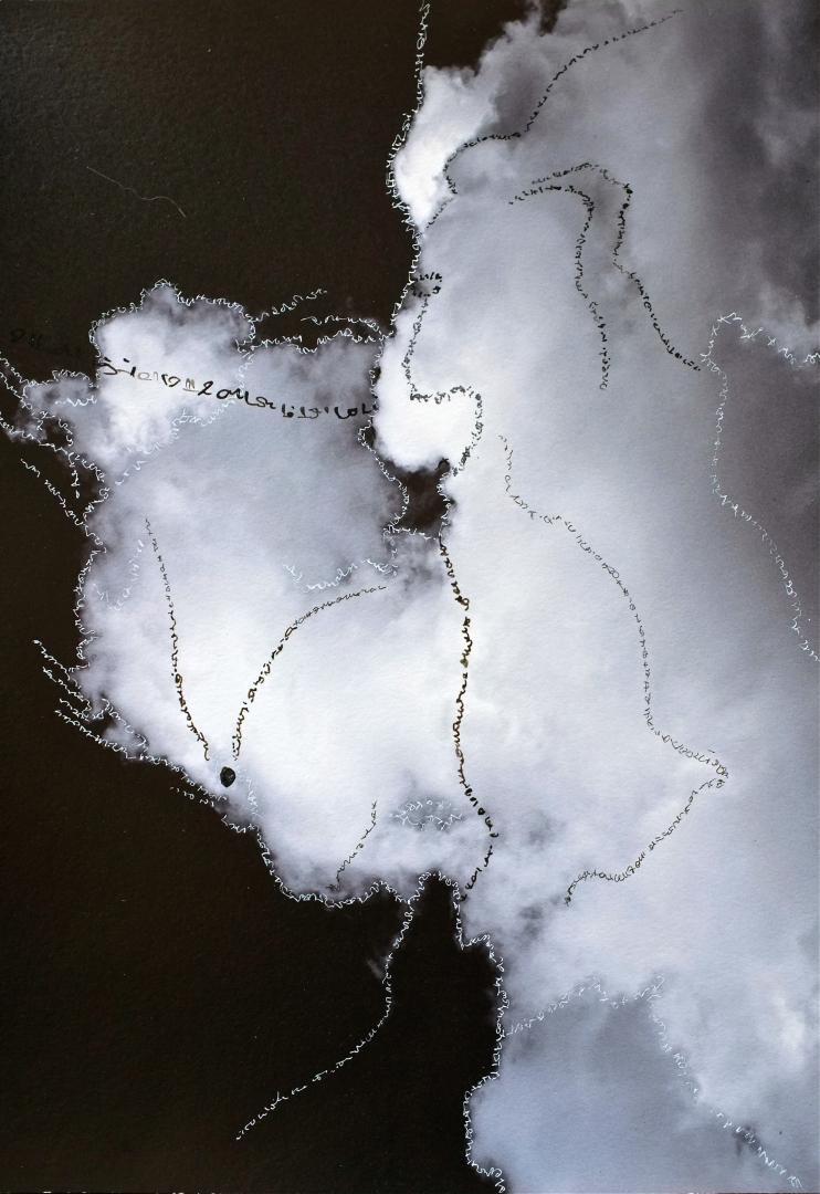… L’encre déposée à la pointe de la plume accumule des lignes d’écriture, qui en dépit de leur illisibilité, s’alignent devant mes yeux comme de magiques manuscrits qui dressent de fragiles parvis suspendus dans l’espace.
