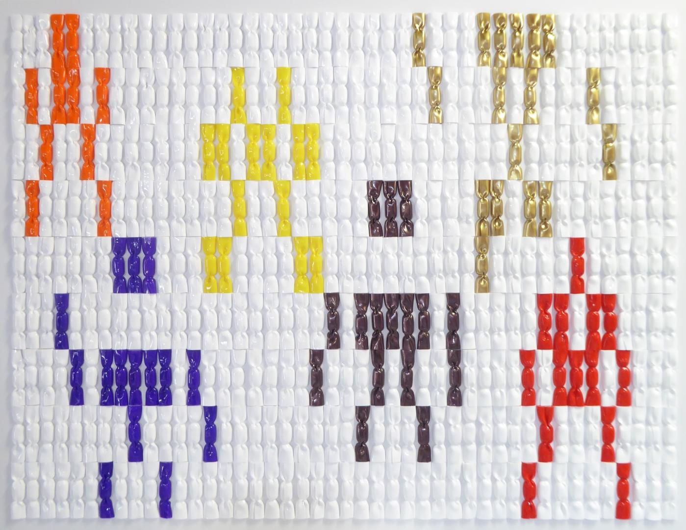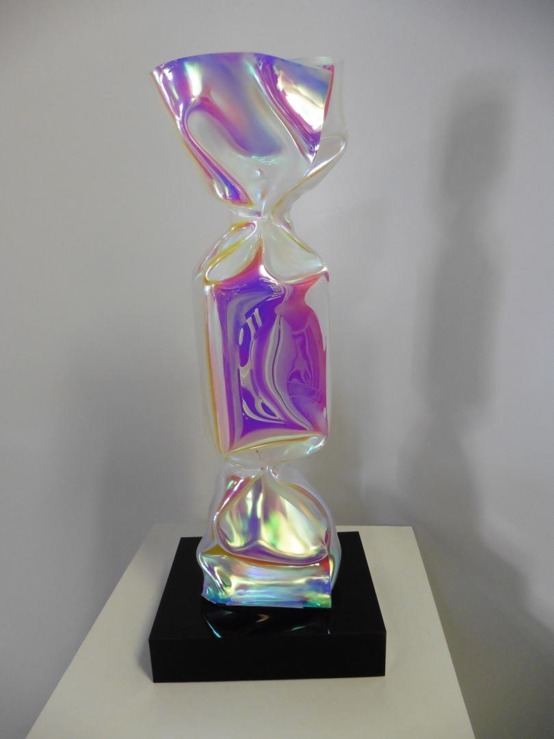 Les bonbons transparents dévoilent leur substance généralement constituée d’une multitude d’objets hétéroclites. Ces objets, produits de grande consommation disponibles dans les rayons des supermarchés, dénoncent ironiquement l’obsession consumériste, accumulatrice de notre société ; le besoin de posséder autant que d’appartenir, de s’identifier.