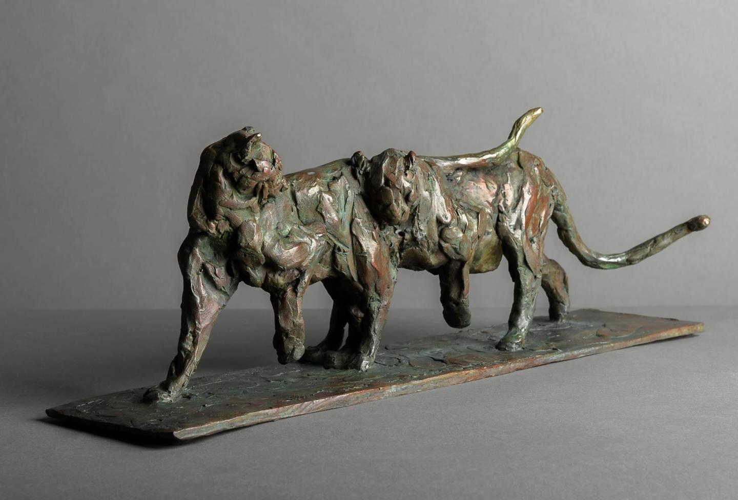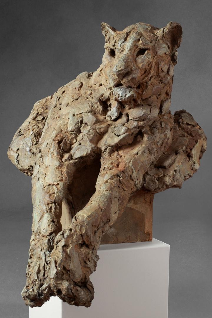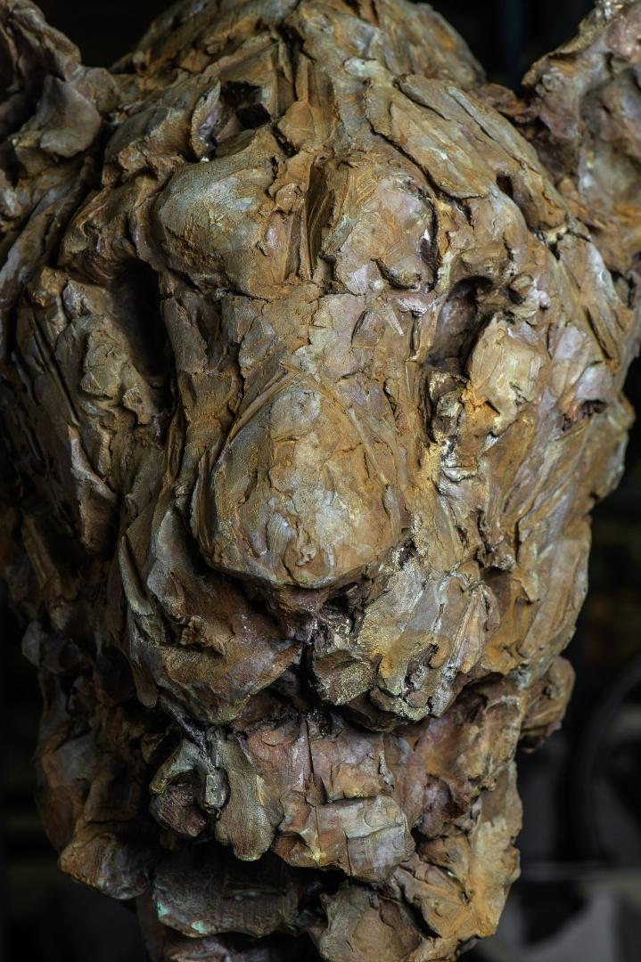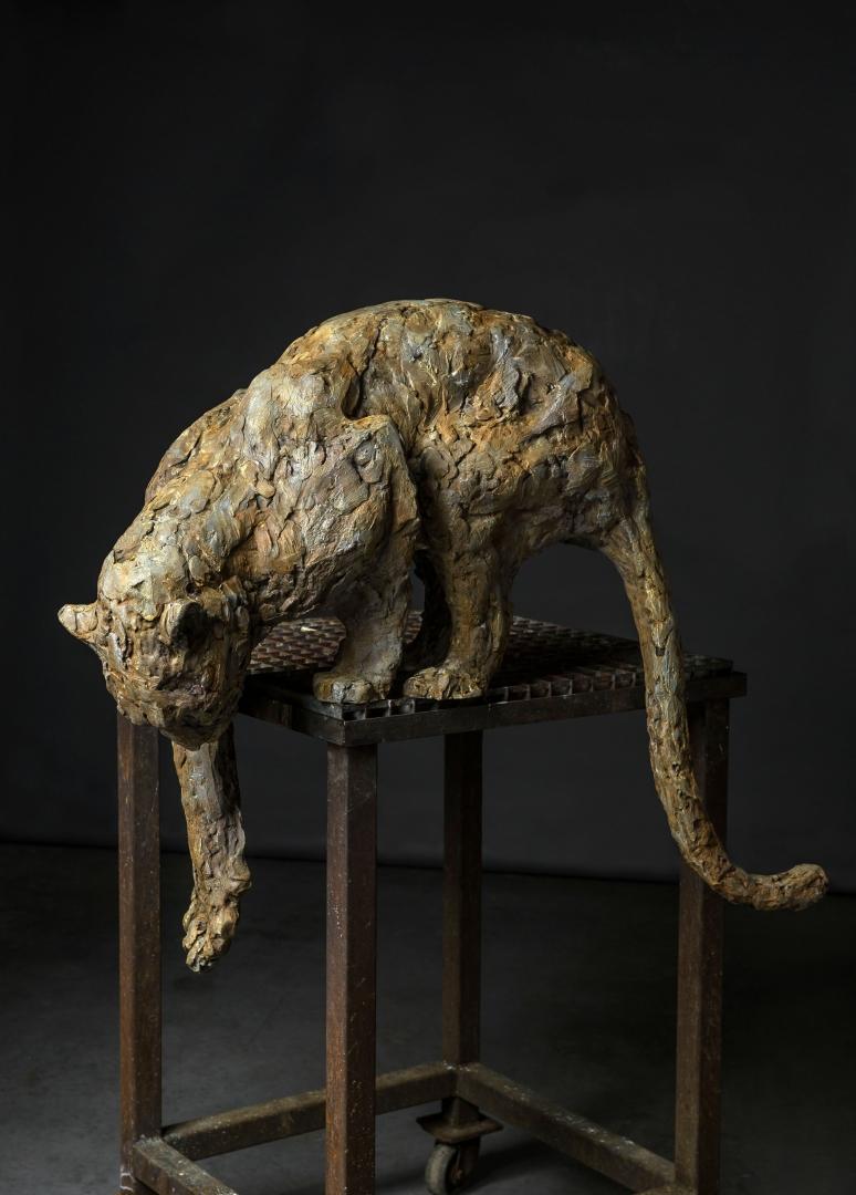 La recherche esthétique qu’il mène sur ces animaux commence par l’étude de l’anatomie avec, comme base, l’ossature à l’origine de la posture. Il reconstruit le corps par ajout de matière, le développe jusqu’à son enveloppe extérieure. On sent bien chez cet artiste, un désir profond de comprendre la genèse du corps de l’animal pour expérimenter sa force, la puissance de son aura au travers de ses postures…