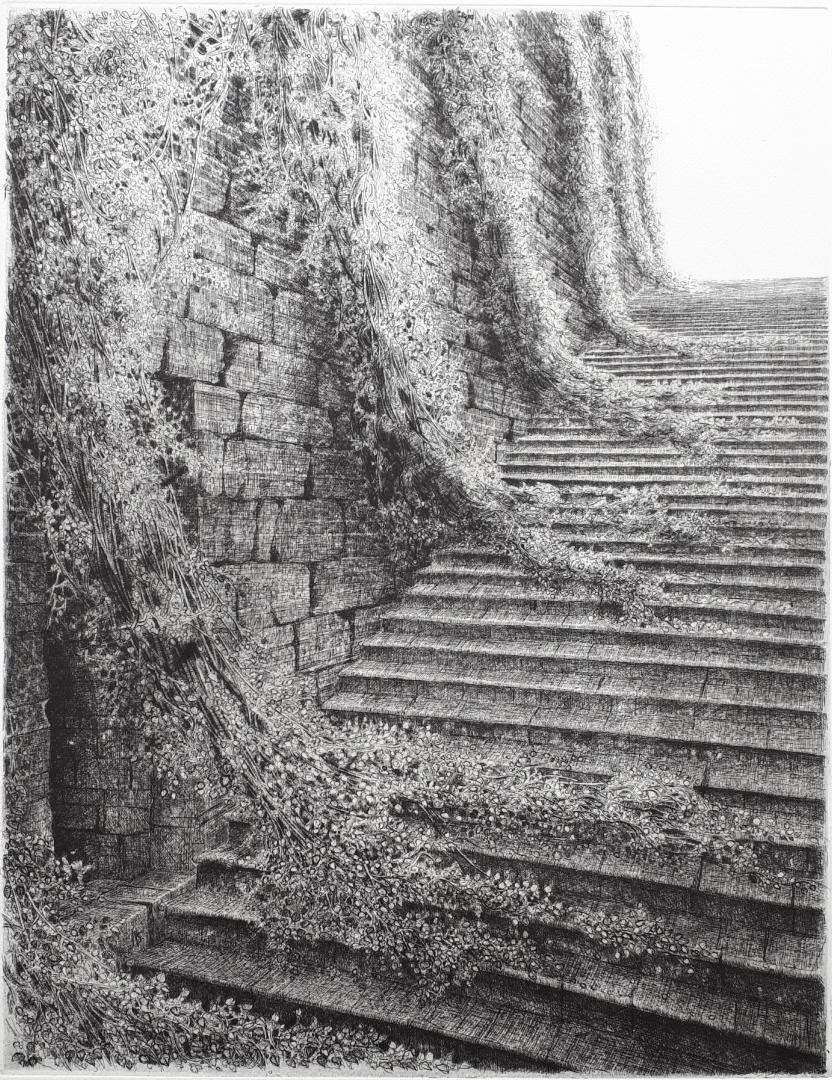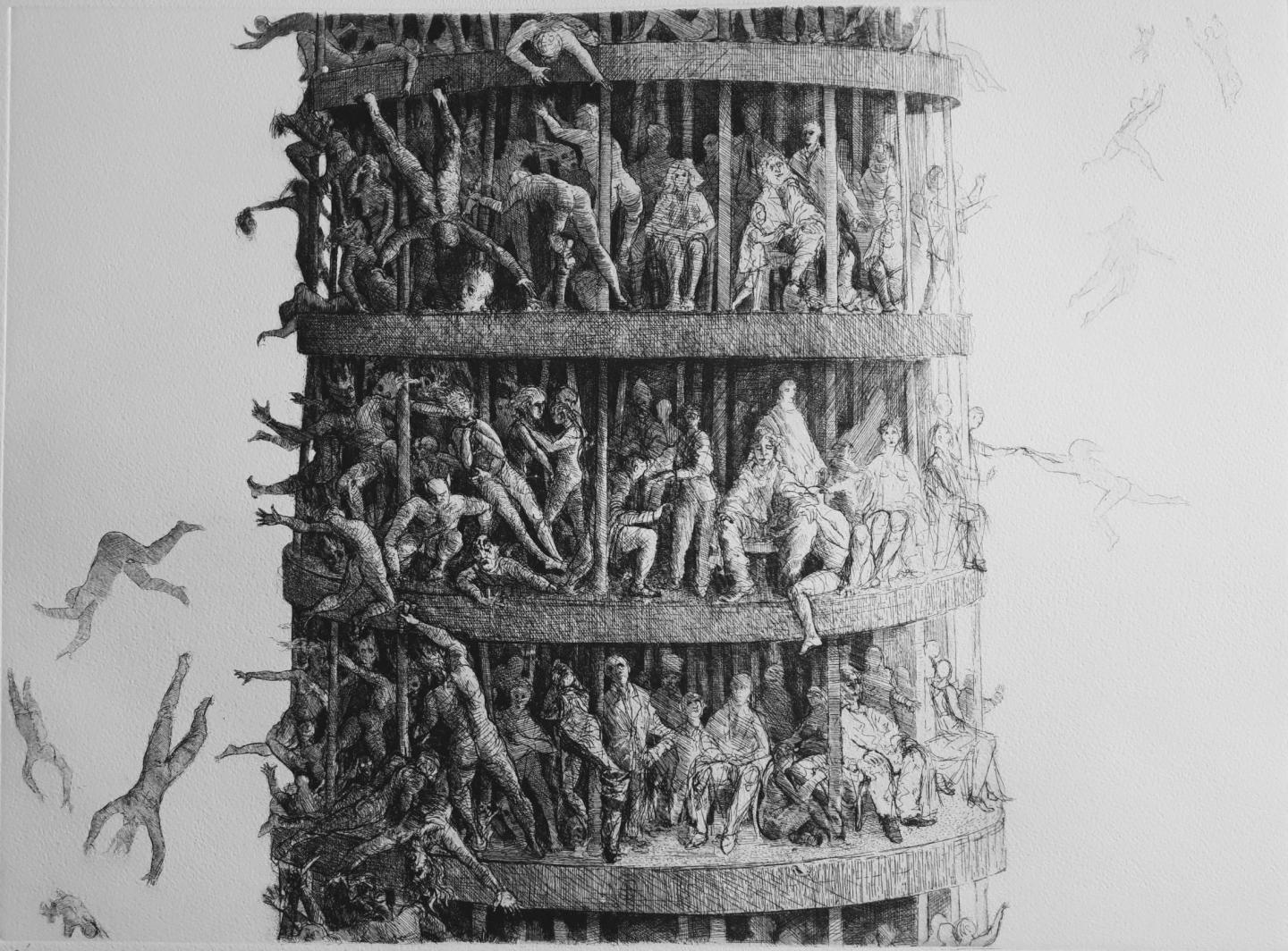 d’humour. Ses estampes, impeccablement réalisées, racontent des histoires souvent tristes mais jamais
