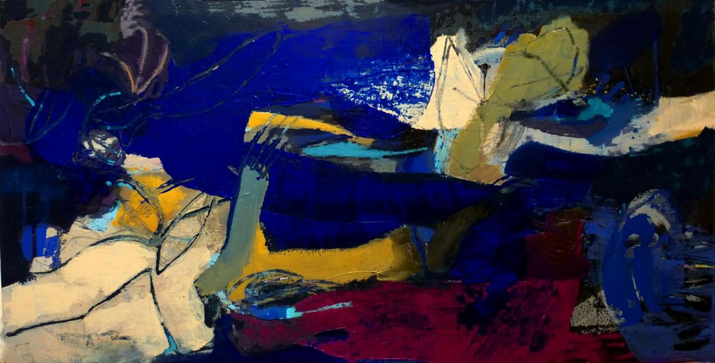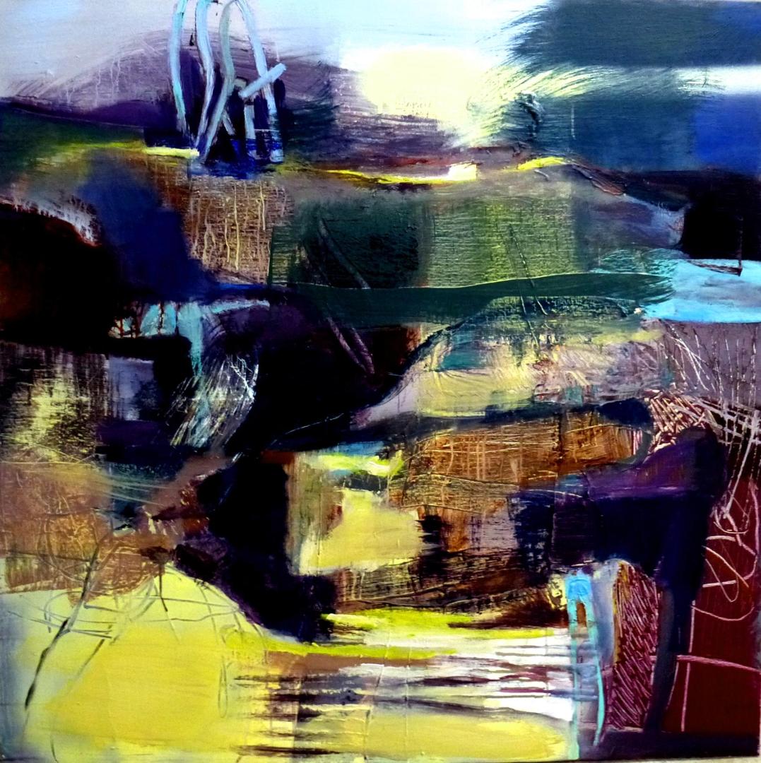 Claire Mérigeau peint des univers imaginaires, poétiques et colorés. Elle aime travailler couleur, structure,