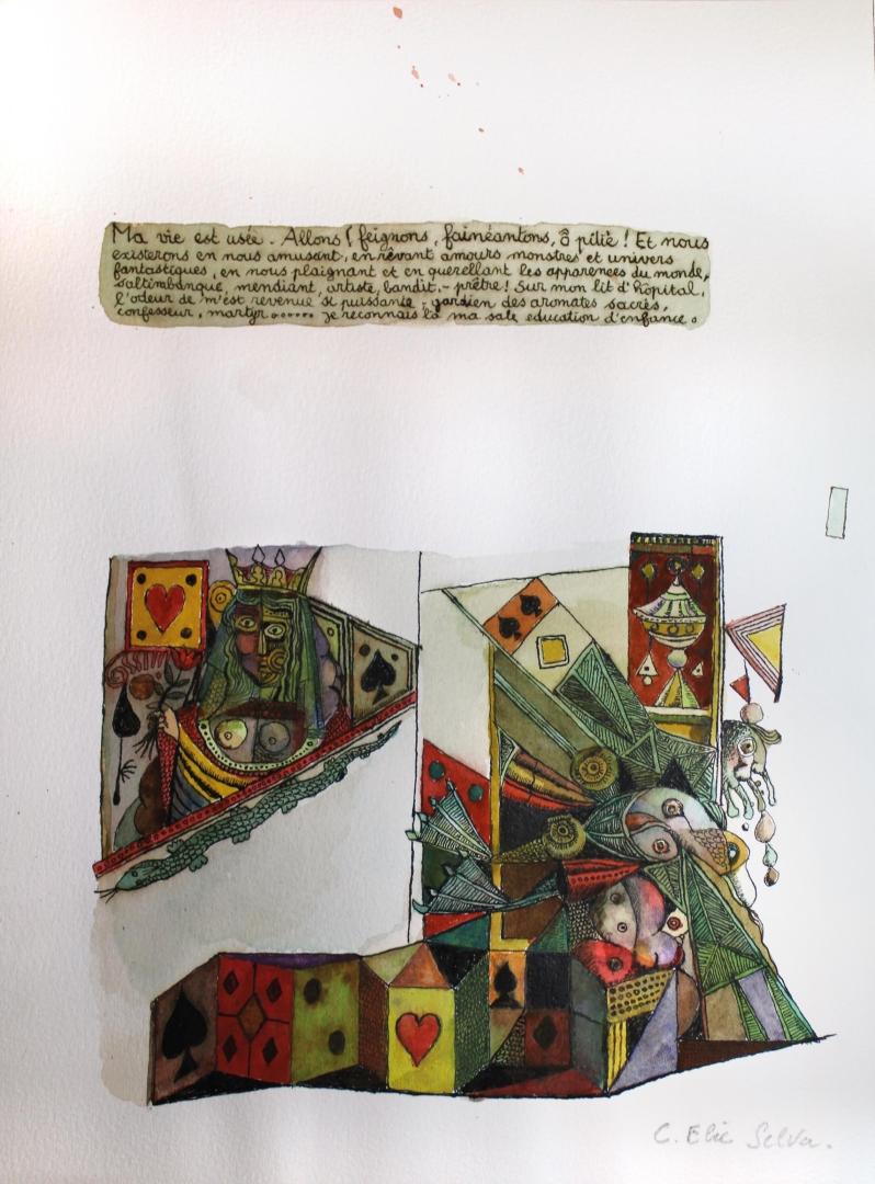 Son regard et son intérêt se portent sur des personnages hors du temps et de la société, il les fait revivre à travers sa peinture et ses dessins. La vie de Claude est simple, il sait profiter des plaisirs quotidien. Ses fantasmes, ses angoisses se manifestent dans la création qui émane de sa vie intérieure et de ses rêves. La réalité cède le pas à l’imaginaire….