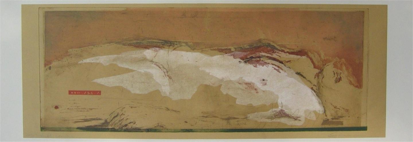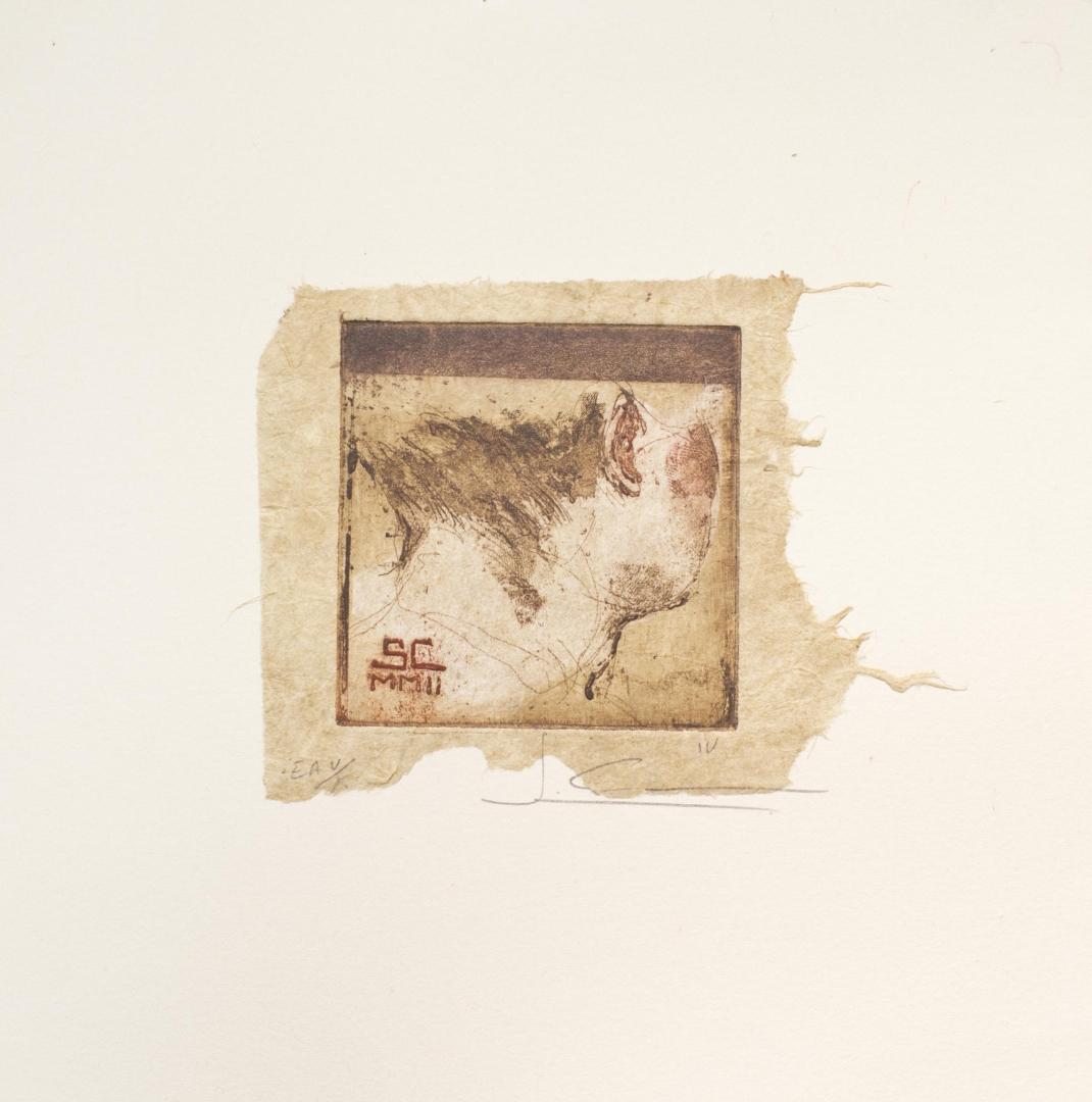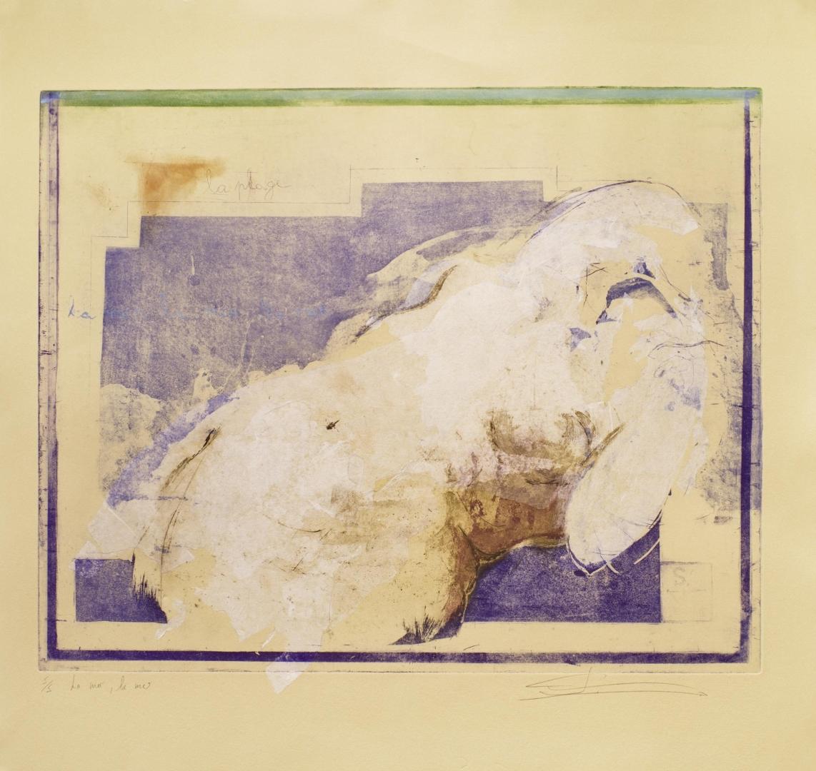 Sylviane Canini développe un style de gravure propre, fait d’aquatintes subtiles qu’elle habille de fins papiers