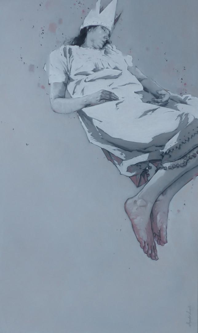 Sa peinture évolue ainsi tout comme ses compositions. Le regard du spectateur s’égare avant de se retrouver de nouveau happé par des êtres féminins rêvés, parfois idéalisés, mais accompagnés d’un totem : tantôt un animal, tantôt un objet