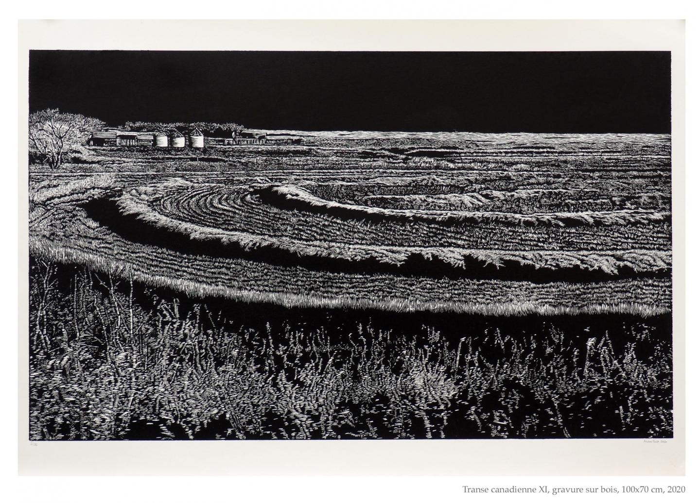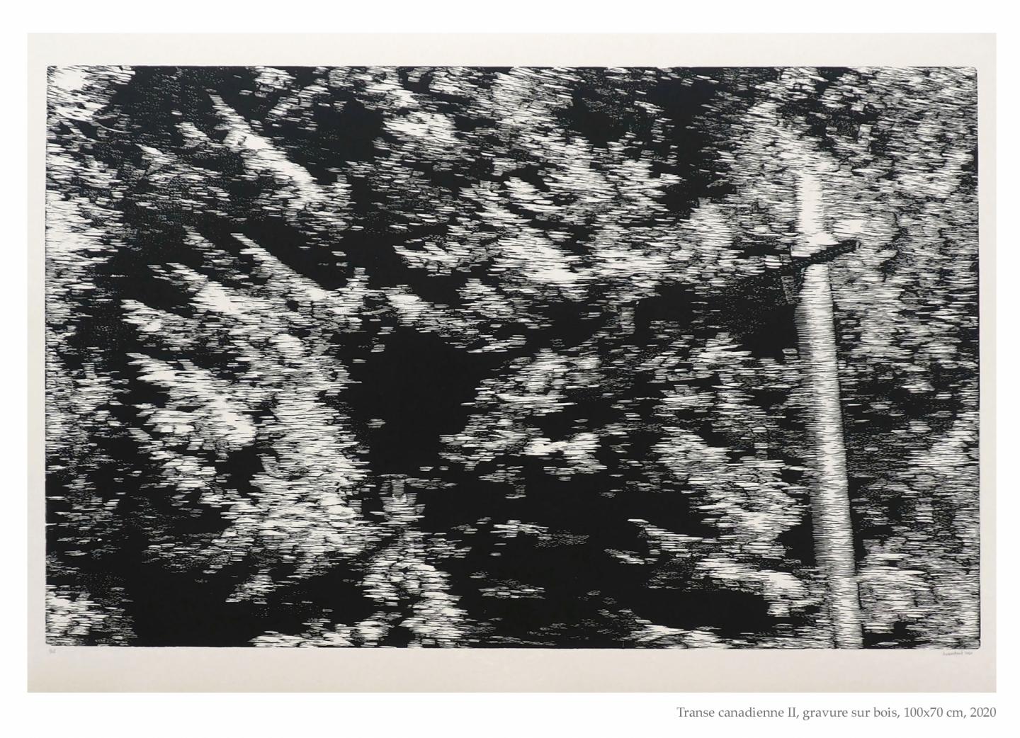 Elle compose ses dessins et gravures à partir de photographies prises de manière furtive dans l’espace public, en particulier dans les transports en commun. En opposant le flou photographique à des procédés très lents et très précis, elle cherche à restituer la sensation de vitesse omniprésente dans les grandes villes tout en questionnant la relation à l’autre et la surconsommation des images dans nos modes de vie contemporains. Ariane Fruit
