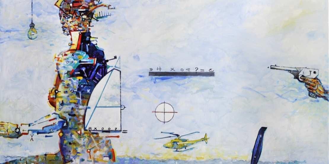 La traduction du visage humain s’est transformée au cours des siècles, en particulier dès le début du 20è s. avec le cubisme notamment. Avant cette période quelques artistes se sont risqués à une représentation imprévue du visage, ainsi Arcimboldo qui reconstituait les traits à partir de fruits et de légumes. Gérard Le Cloarec exprime la sensibilité de notre temps dans une forme nouvelle de langage plastique. Baroques sont ses représentations de personnalités connues dans divers domaines. Portraits réécrits et reconnaissables exécutés à base de multiples signes graphiques, de traits acérés qui fractionnent quelque peu le visage sans le dénaturer. Des multiples facettes fortement colorées surgit une figure connue : Vinci dont le regard intense émerge d’un enchevêtrement de lignes et de couleurs, Rembrandt aux yeux scrutateurs seuls lisibles dans un vivant portrait mais encore Hugo, Colette, Gandhi ou une surprenante Mona Lisa en bigoudène.