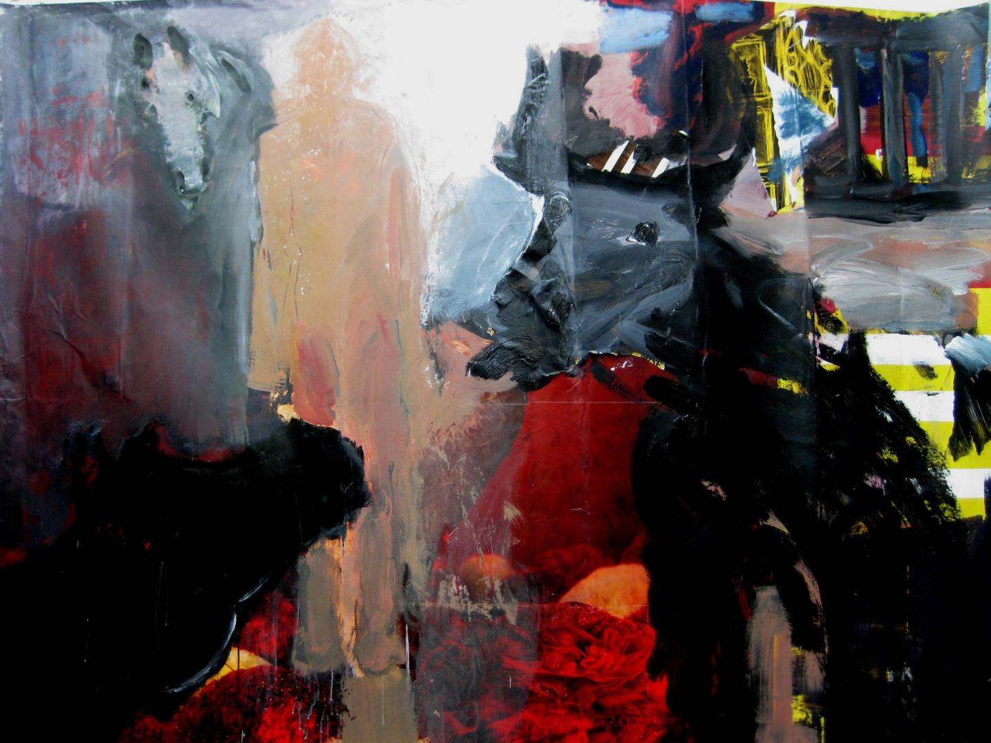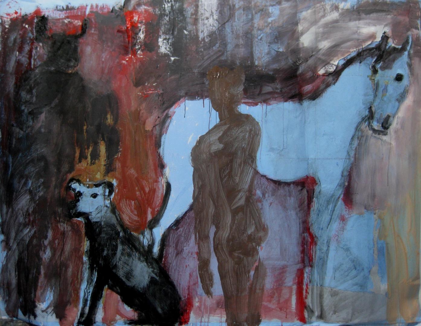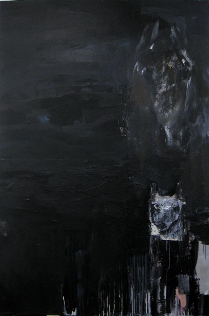 En 2016 ce peintre a réalisé une série intitulée « Dead end » qui met en scène principalement des chevaux au regard apeuré, terrifié pour certains par quelque danger qu’ils pressentent. Devinent-ils la mort proche, sont-ils effrayés par une sensation d’abandon ? Hélène Milakis traduit cette angoisse en une peinture où la figuration se teinte d’abstraction ; elle travaille volontiers par masse une matière nourrie d’éléments divers. Dans ces compositions les tons sombres s’unissent à des couleurs plus vives et des blancs travaillés diffusent la lumière. Ces toiles portent en elles une certaine violence teintée d’inquiétude.