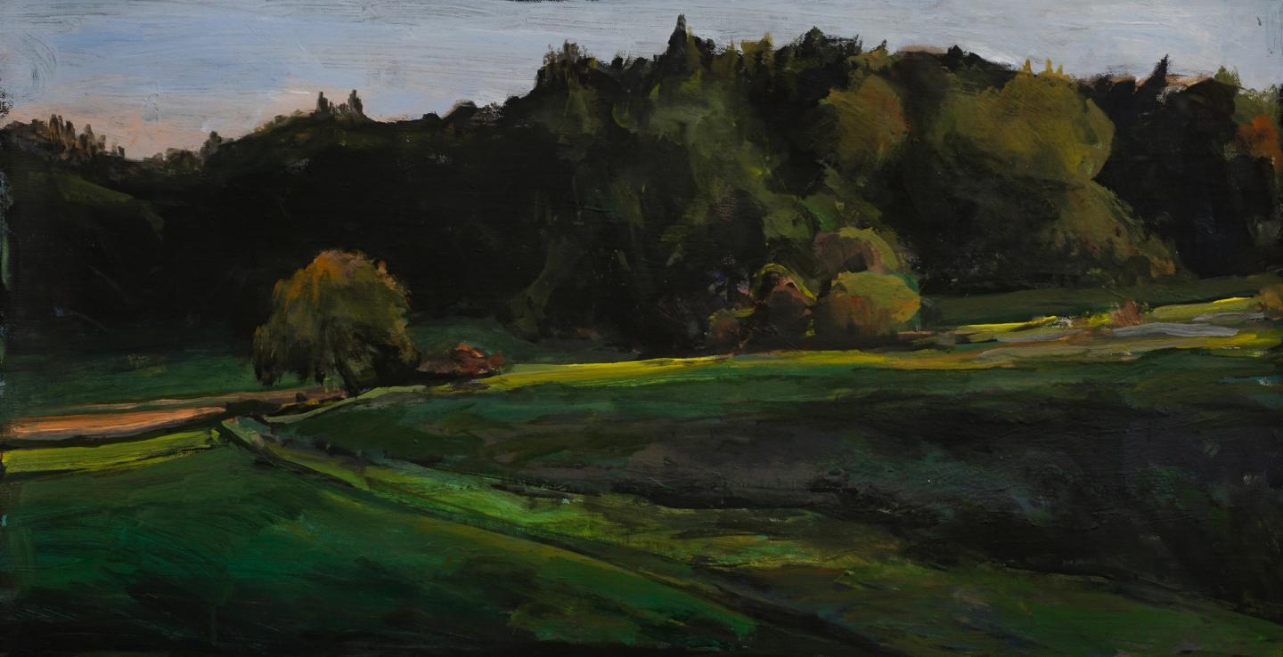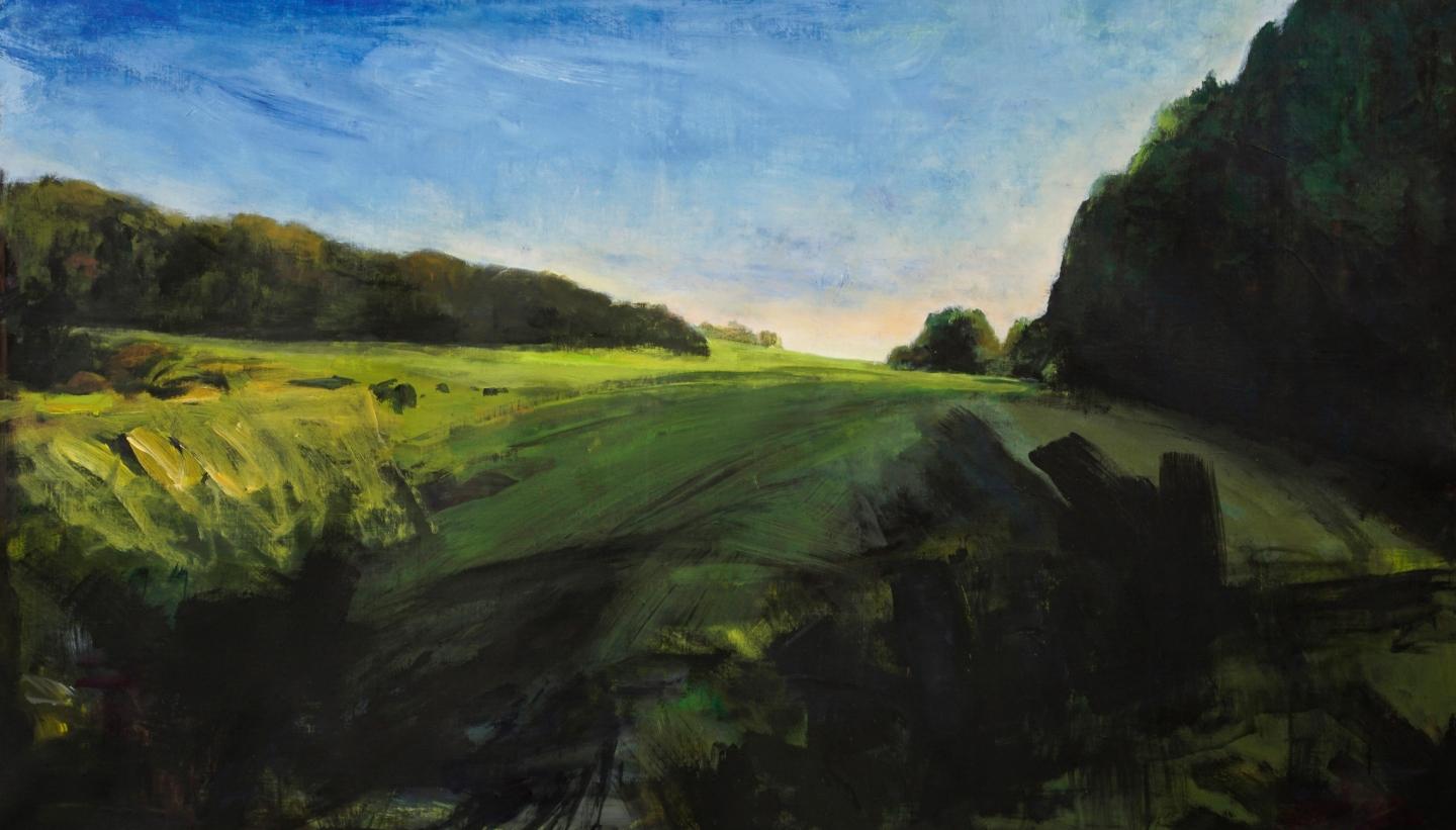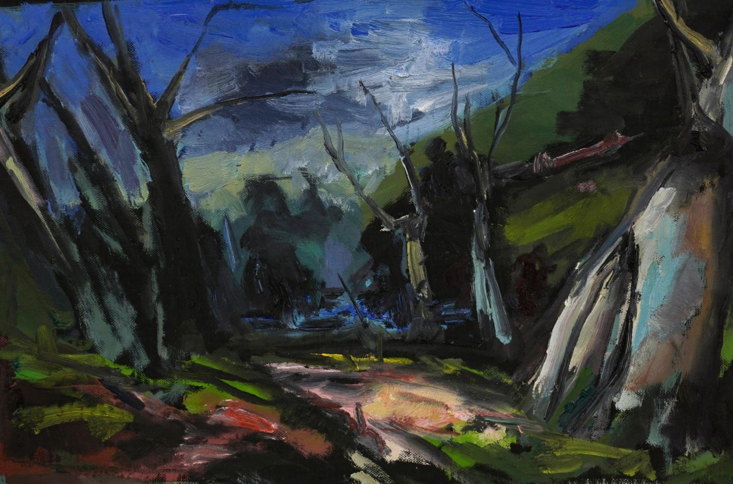 Dans cette intéressante interprétation, la nature conserve sa vérité. C’est un chant d’amour de l’artiste pour des paysages observés avec attention. Ingrid Stübinger a suivi des études littéraires et linguistiques et n’a pu suivre de formation en peinture mais, sans se décourager, elle a toujours peint. A l’instar des impressionnistes, elle évoque la campagne à toutes heures du jour, elle en restitue l’ambiance et le site apparaît différent suivant le moment choisi ; la lumière se fait plus ou moins intense sur chemins et collines. Une figuration allusive et puissante évoque la nature en longues touches appuyées, gestuelles qui captent l’âme du lieu. Dans cette œuvre fortement rythmée où les ciels sont souvent largement travaillés, l’artiste fait ressentir l’ampleur de l’espace aussi bien que le vent secouant des arbres au dessin esquissé par des masses. On ressent l’admiration de ce peintre pour la nature qu’elle peint telle qu’en elle-même, rustique, soumise aux éléments. Ingrid Stübinger la saisit en des angles personnels, en un chromatisme où dominent les terres sombres, les bleus, les jaunes. Cette œuvre est révélatrice d’un vrai tempérament de peintre et d’une grande sensibilité.