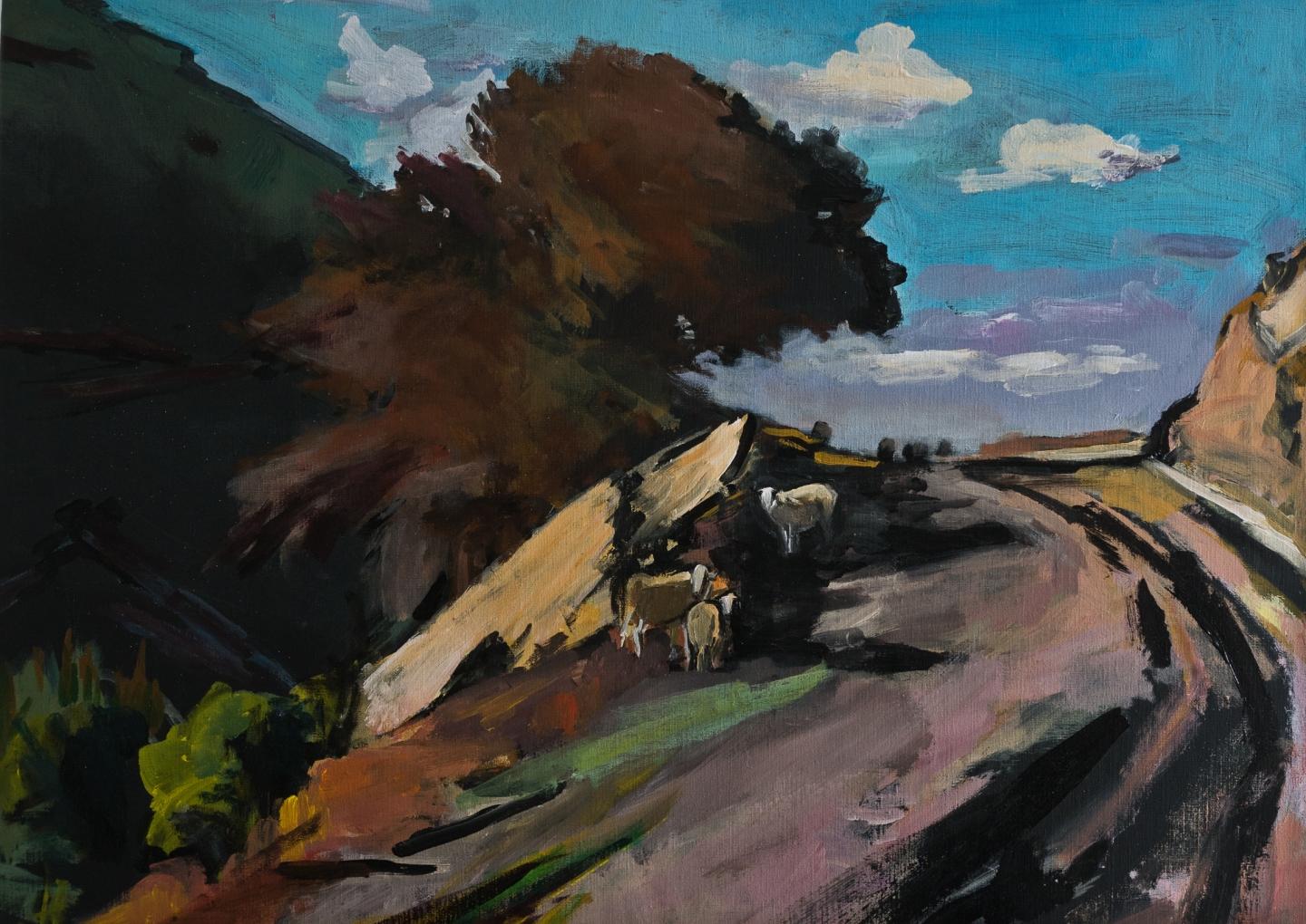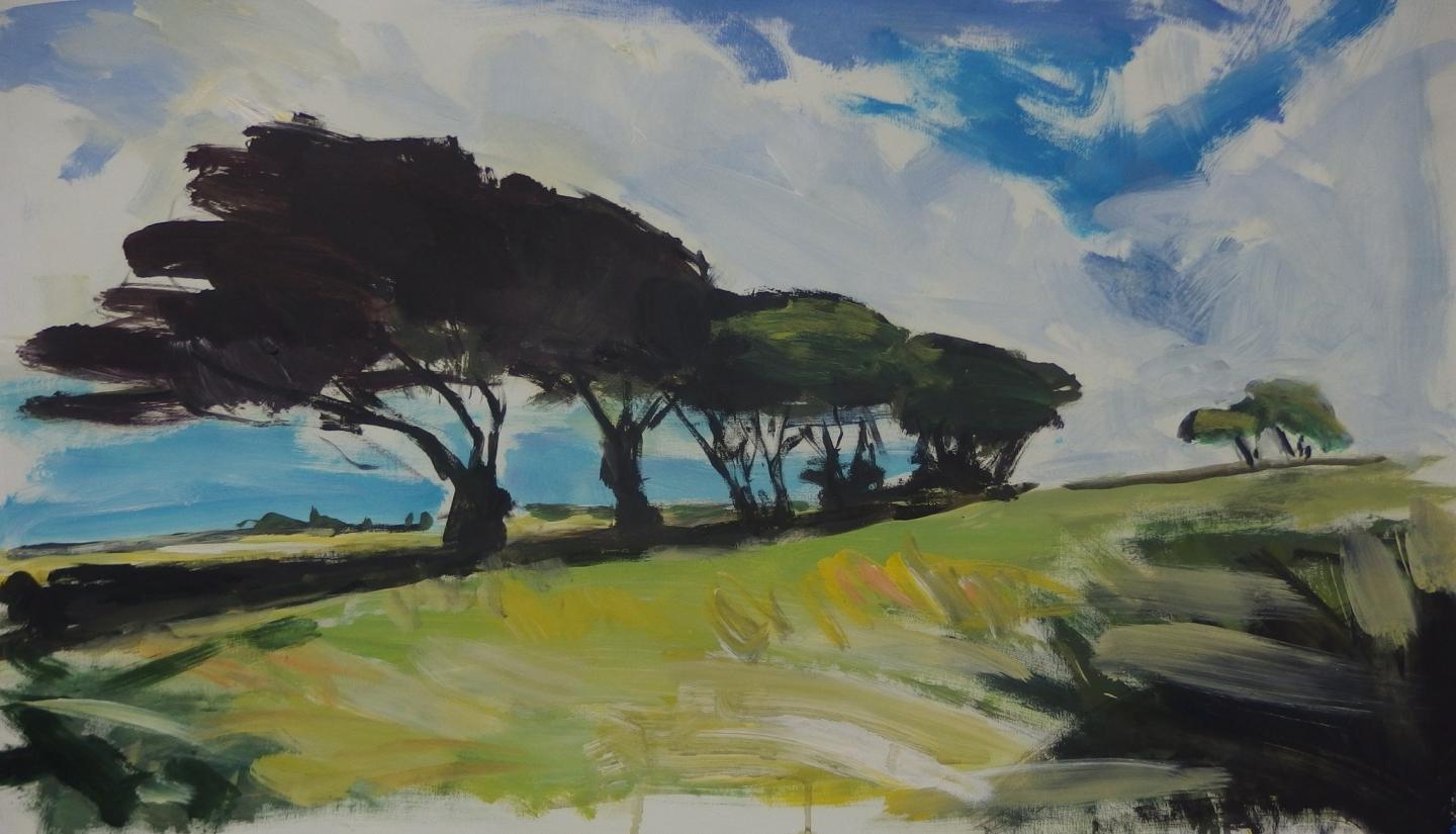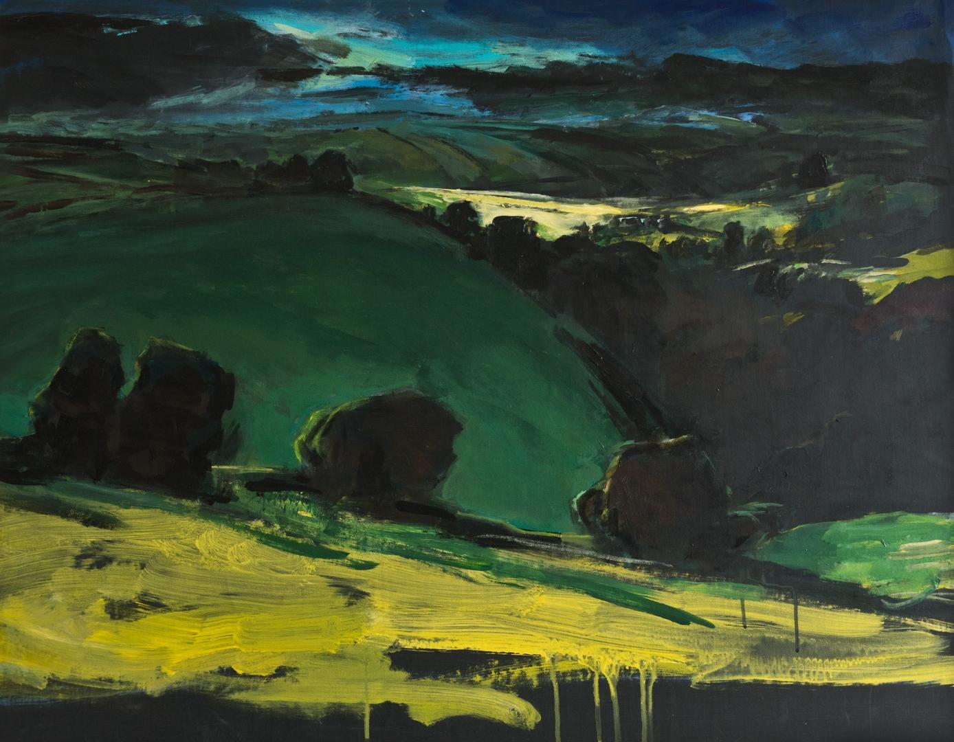 Dans cette intéressante interprétation, la nature conserve sa vérité. C’est un chant d’amour de l’artiste pour des paysages observés avec attention. Ingrid Stübinger a suivi des études littéraires et linguistiques et n’a pu suivre de formation en peinture mais, sans se décourager, elle a toujours peint. A l’instar des impressionnistes, elle évoque la campagne à toutes heures du jour, elle en restitue l’ambiance et le site apparaît différent suivant le moment choisi ; la lumière se fait plus ou moins intense sur chemins et collines. Une figuration allusive et puissante évoque la nature en longues touches appuyées, gestuelles qui captent l’âme du lieu. Dans cette œuvre fortement rythmée où les ciels sont souvent largement travaillés, l’artiste fait ressentir l’ampleur de l’espace aussi bien que le vent secouant des arbres au dessin esquissé par des masses. On ressent l’admiration de ce peintre pour la nature qu’elle peint telle qu’en elle-même, rustique, soumise aux éléments. Ingrid Stübinger la saisit en des angles personnels, en un chromatisme où dominent les terres sombres, les bleus, les jaunes. Cette œuvre est révélatrice d’un vrai tempérament de peintre et d’une grande sensibilité.