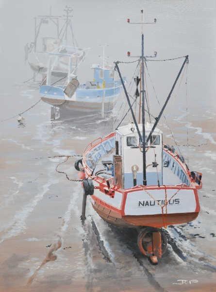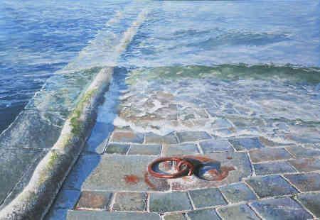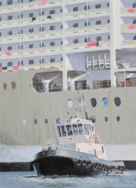 On devine Jean-Claude Pallier contemplatif devant cette étendue mystérieuse et mouvante parfois animée de bateaux ou d'impressionnants paquebots qu'il transmet sur la toile en un graphisme précis, rythmé, dans une fine matière et une palette sensible. Présente dans chaque composition, une lumière délicate les anime.