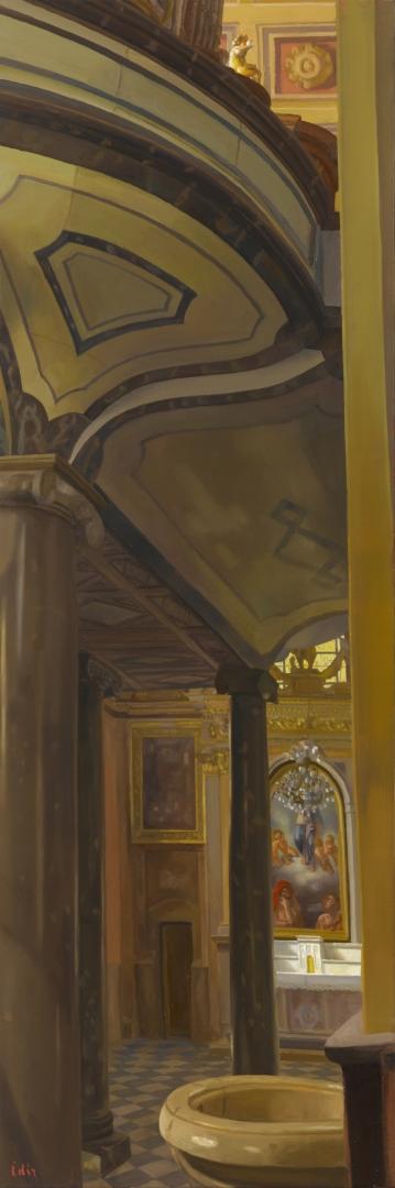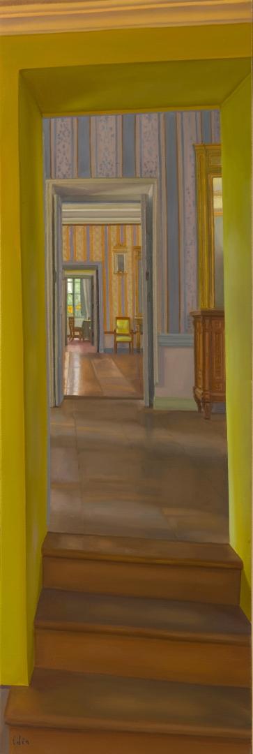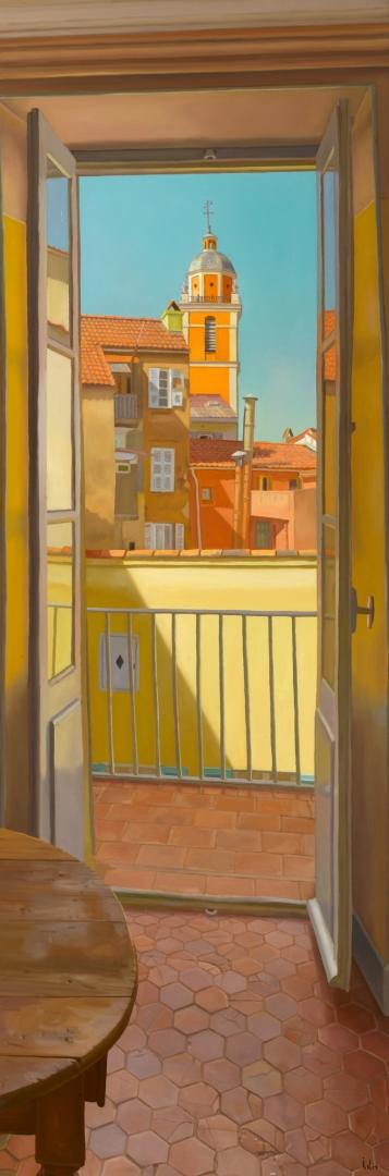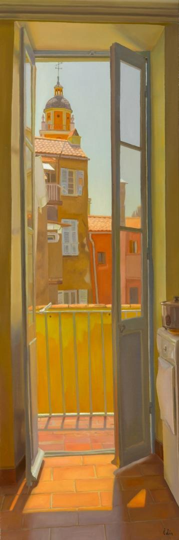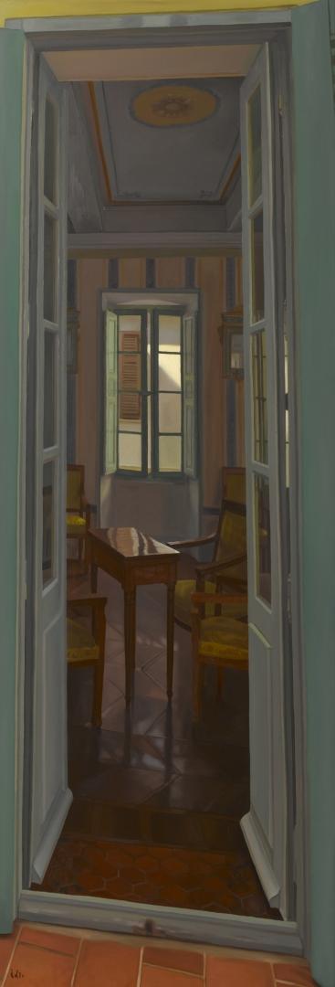 Jean-Marc Idir aime également transmettre la pénombre d’intérieurs en enfilade ici encore sans détails inutiles, seul un bureau signale la présence d’habitants. En une matière délicate finement travaillée et nuancée cet artiste nous invite dans ce Sud dont il sait si bien traduire la sérénité, le bonheur de vivre.