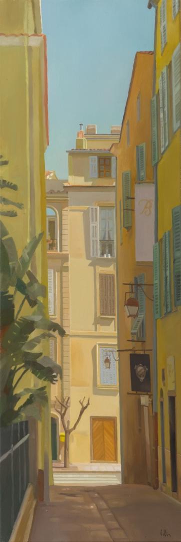 Pour ces espaces ouverts, aux cadrages très personnels, Jean-Marc Idir suscite l’intérêt de la découverte des lieux qu’il a choisis et qu’il ne dévoile qu’en partie. Ces rues étroites sans promeneurs qui attendent le soir lorsque la canicule fait place à la fraîcheur pour vivre pleinement. Avec une précision du dessin l’artiste transmet une atmosphère, saisit les jeux d’ombre et de lumière en des formats étroits et en hauteur qui conviennent si bien à ces thèmes.