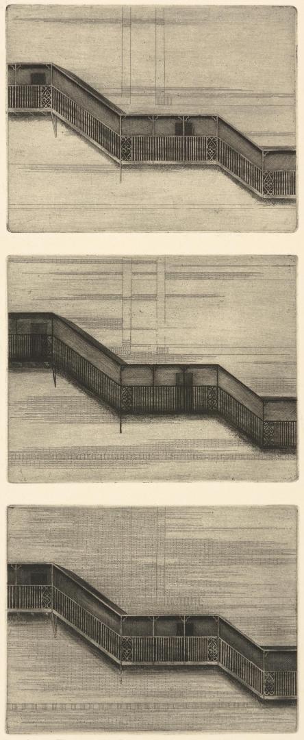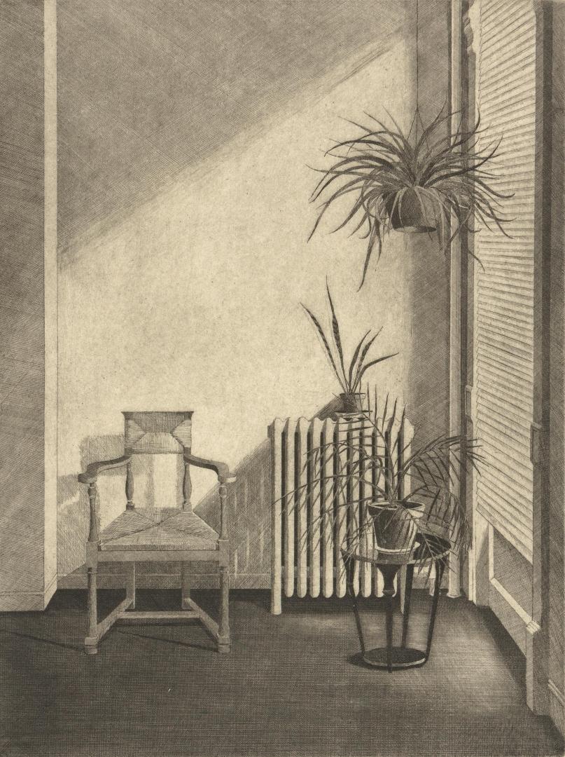 Rigoureuses, souvent architecturées, ses aquatintes sont réalisées dans des tonalités d’ocre et de brun. L’artiste témoigne d’une intéressante discipline dans son travail, multiplie parfois les tracés linéaires ou croisés avec une grande finesse.