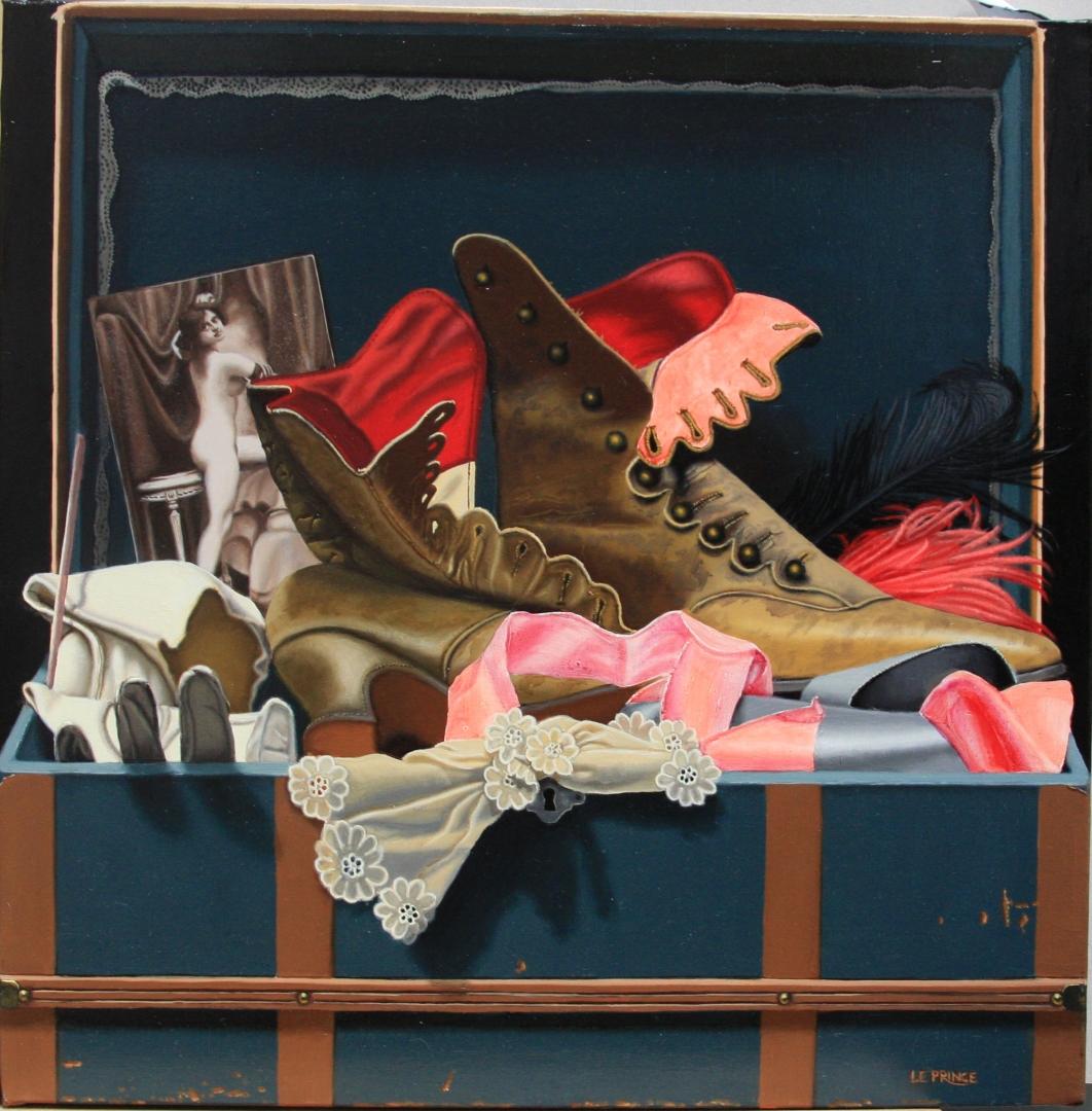 Peints dans la lumière avec une objectivité qui n’occulte jamais la personnalité de l’artiste, les tableaux de Nadine Le Prince ne sont pas copie bien sûr. Avec intelligence elle organise la composition, met en scène les éléments, diversifie les thèmes :le théâtre et ses accessoires, des masques de carnaval ou encore des costumes sur lesquels irradie la lumière. La précision du dessin, une subtile stylisation témoignent de son talent et la palette sur laquelle jouent les reflets communiquent une nouvelle dimension aux sujets; on atteint ici l’intemporel.