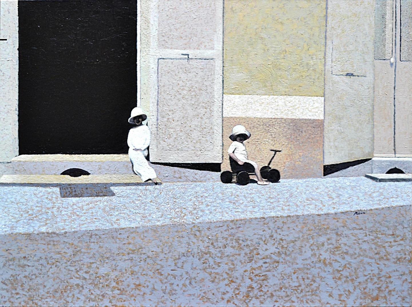 Avec sensibilité Noélie Raix recrée ces ambiances en une matière nourrie qui laisse par endroit apparaître des reliefs ou bien elle permet deviner la texture de la toile. Des œuvres d’une belle densité où la gamme chromatique vigoureuse participe à l’expression. Les compositions de plein air respirent sous la lumière ardente et dans les quelques scènes d’intérieur la matière se fait plus lisse, le dessin plus précis et la palette demeure toujours très nuancée. Ces œuvres chantent la vie, elles recèlent aussi les secrets de chacun.