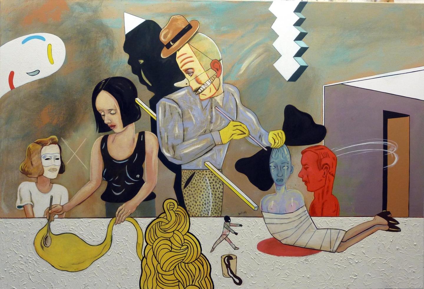 L’humour, la fantaisie baignent cette œuvre dans laquelle les personnages ressemblent parfois à des mannequins et apparaissent cependant très vivants.C’est la vision originale de ce peintre qui détourne quelque peu la réalité quotidienne avec talent et verve.
