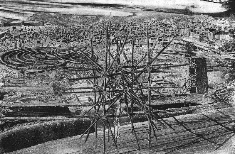 Dans ces espaces arides, souvent chaotiques, ce lacis régulier de voies inextricables s’impose dans l’espace, énigme envoûtante que le graveur transmet avec un grand talent en des tailles entremêlées et sous des ciels aux intéressantes fulgurances.